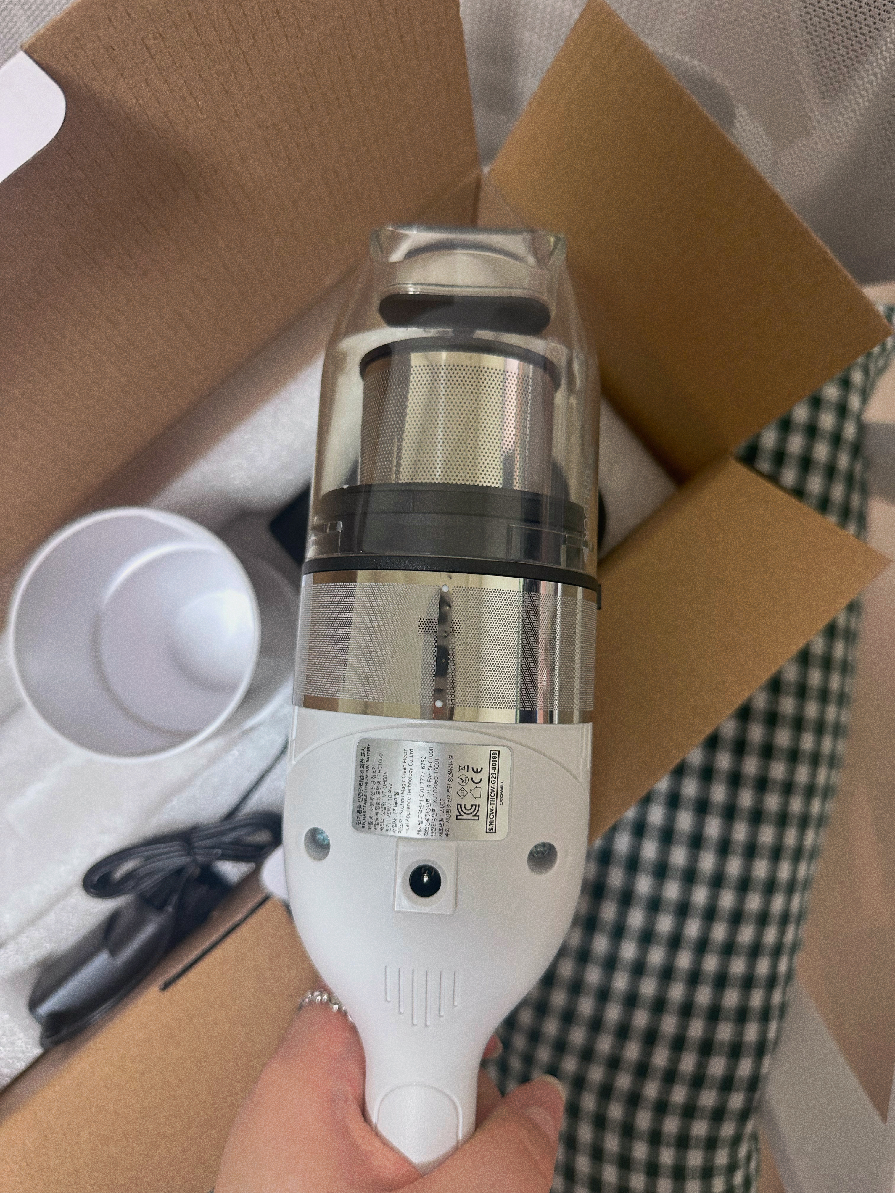 본가에 살다가 자취하러 나온지 벌써 2달 반 정도 지났다. 통칭 '돌돌이'로 청소하기에는 스트레스를 많이 받고 있는지 머리카락이 우수수 떨어져서 더이상 돌돌이로 해결이 불가능해보였다. 그래서 어제 급하게 쿠팡으로 주문한 캐치웰 텀블러 다용도 무선 핸디 청소기! 이름 참 엄청길다 싶었는데 도착한 박스를 띁어보니.. [캐치웰 차량용 청소기 THC 1000] 차량용 청소기인 줄 아예 몰랐는데 다음부터는 상세이미지도 꼼꼼히 읽어봐야겠다. 여차하면 남자친구가 놀러오는 날에 이걸로 청소를 해봐야겠다는 생각도 들었다. 흰색을 시켜서 흰색 박스에 왔는지는 다른 색을 안사봐서 잘 모르겠지만, 흰색을 시킨 나는 흰색이 도착했다.