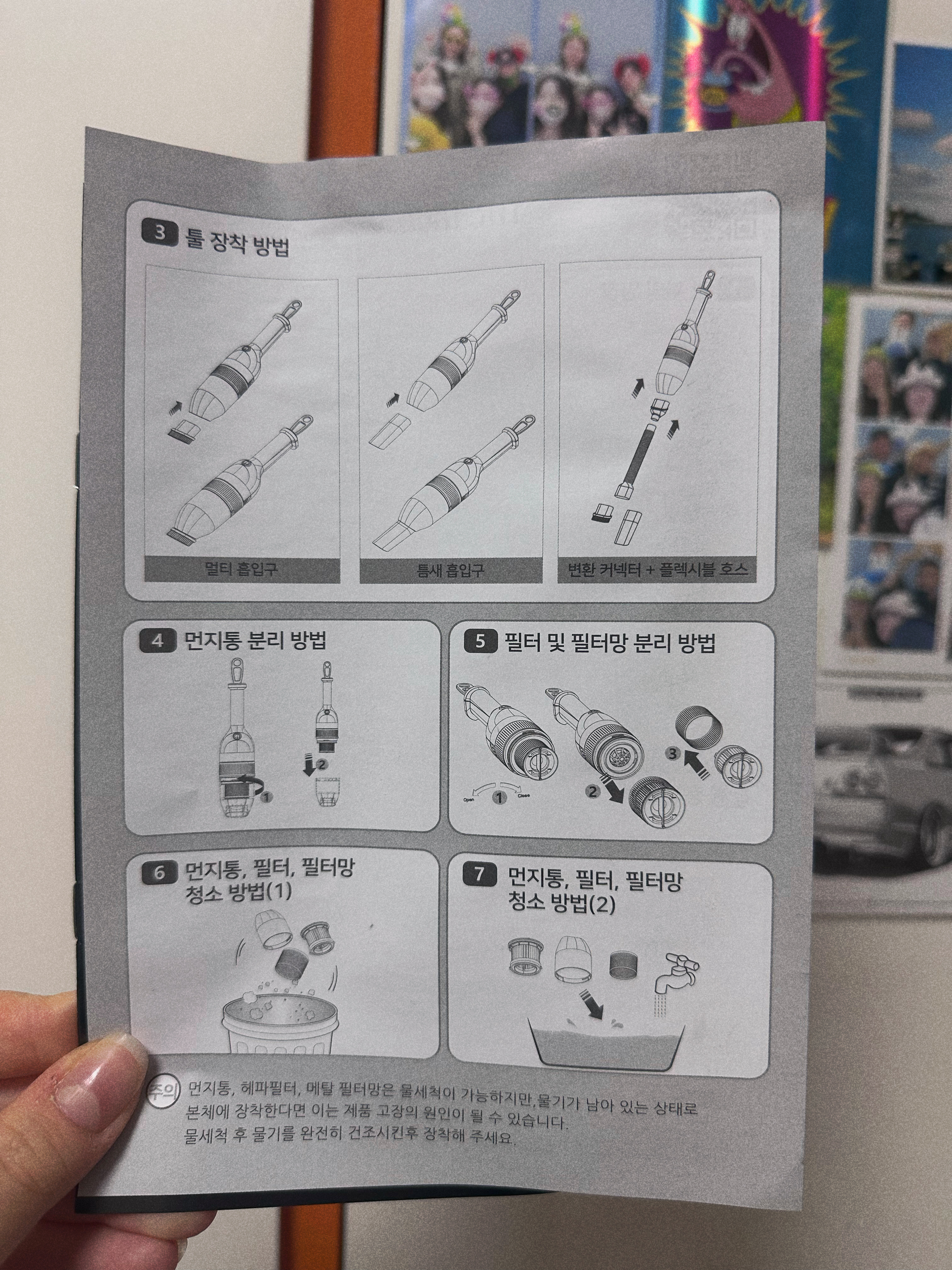 청소기를 자주 사용하지 않아본 정말 첫 자취고 첫 집안일을 해보게 된 거라면 한 번쯤은 꼭 읽어보길 바란다. 이걸 무심코 버렸다면 내 글에서 사진을 다시 볼 수 있기를 바라며 적는다. 검정색 종이책은 굳이 읽지 않아도 된다고 생각이 들지만 위에 첨부한 2개의 이미지는 왠만하면 필수로 읽어보길 바랍니다. 청소기와 오래 오래 사이좋게 지내고 싶다면 말이죠 :)